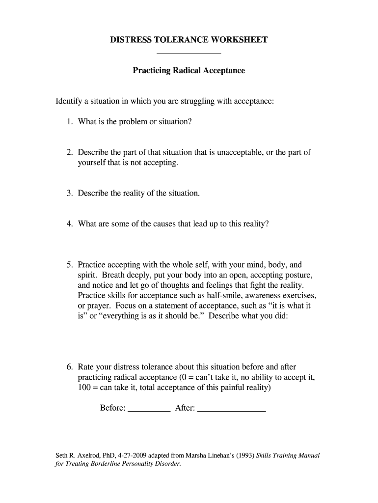 How to fill out distress tolerance worksheet