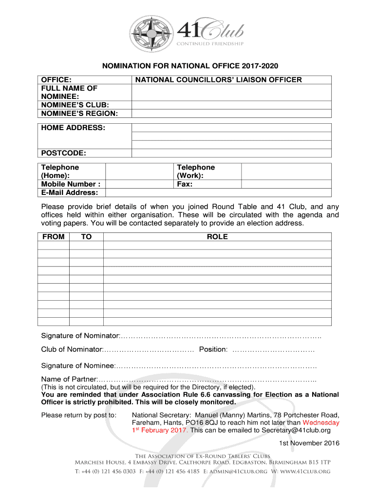 Fill out your nominees club online with pdfFiller!