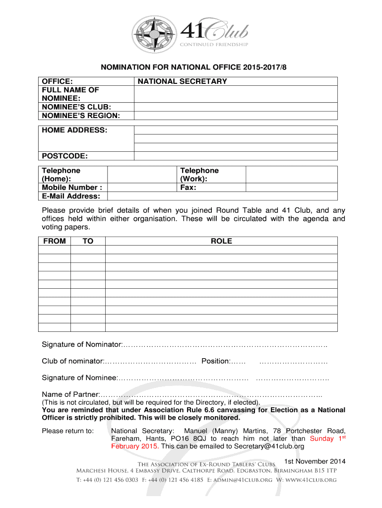 NOMINEES REGION:NATIONAL SECRETARYHOME ADDRESS:POSTCODE: