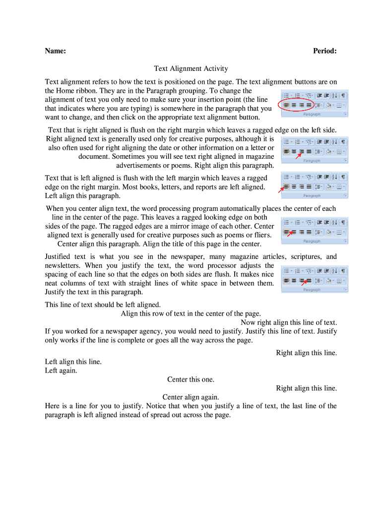 Text Alignment ActivityText alignment refers to how the text is positioned on the page. The text alignment buttons are on