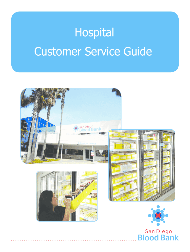Hospital Customer Service GuideCustomer Service Guide table of contents July 2017.v2 June 2016.v1page 1page 6page 8Request for Credit page 10Send Units Requiring Special Handling page 12Transfer Blood