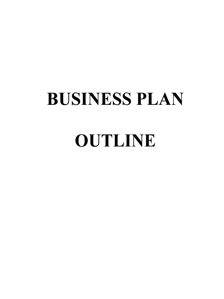 BUSINESS PLAN OUTLINEBUSINESS PLAN AND CASH FLOW PROJECTIONS FOR (Name of Business) (Name of Owner) (Business Address & Phone). Table of Contents Topic I. Executive Sun unary II. Business Description