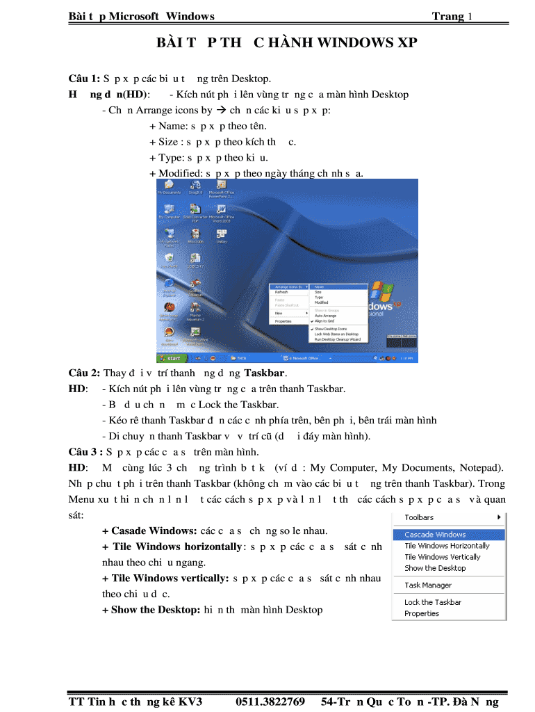 Bi TP Microsoft WindowsTrang 1BI TP THC HNL WINDOWS XP Cu 1: Sp XP cc BIU TNG ten Desktop. Hung DN(HD): kWh NT phi LN CNG tang ca MN HNL Desktop CHN Arrange icons by CHN cc kit SP XP: + Name: SP XP