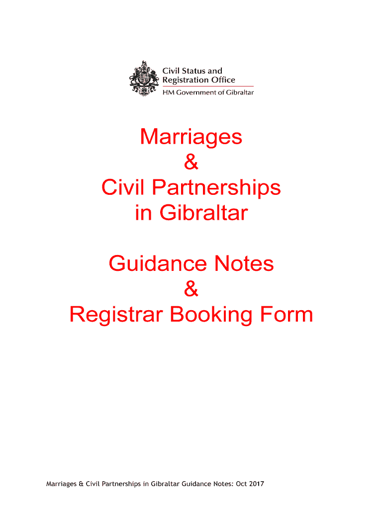 ! Marriages & Civil Partnerships in Gibraltar Guidance Notes & Registrar Booking Remarriages & Civil Partnerships in Gibraltar Guidance Notes: Oct 2017INTRODUCTION This guide summarizes the requirements