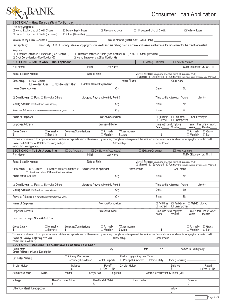 Consumer Loan Application SECTION A How Do You Want To Borrow am I applying for a ! Home Equity Line of Credit (New) ! Home Equity Line of Credit (Increase)! Home Equity Loan ! Unsecured Loan ! Unsecured