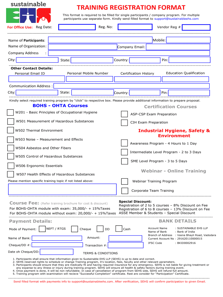 participants use separate form. Kindly send filled format to support×sustainable.come.