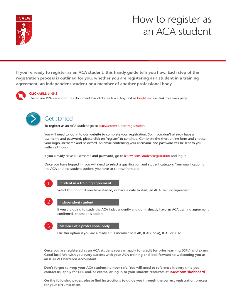 an ACA students you're ready to register as an ACA student, this handy guide tells you how. Each step of the