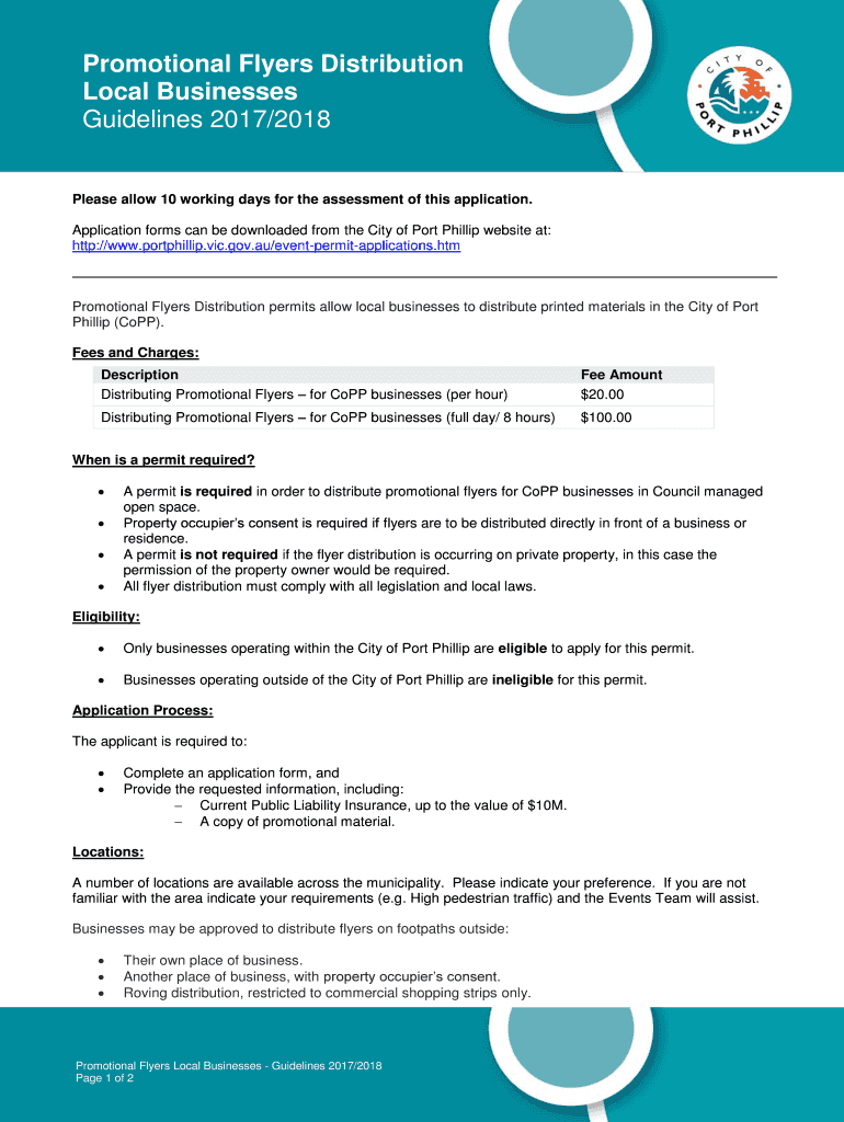 Promotional Flyers Distribution Local Businesses Guidelines 2017/2018Please allow 10 working days for the assessment of this application. Application forms can be downloaded from the City of Port