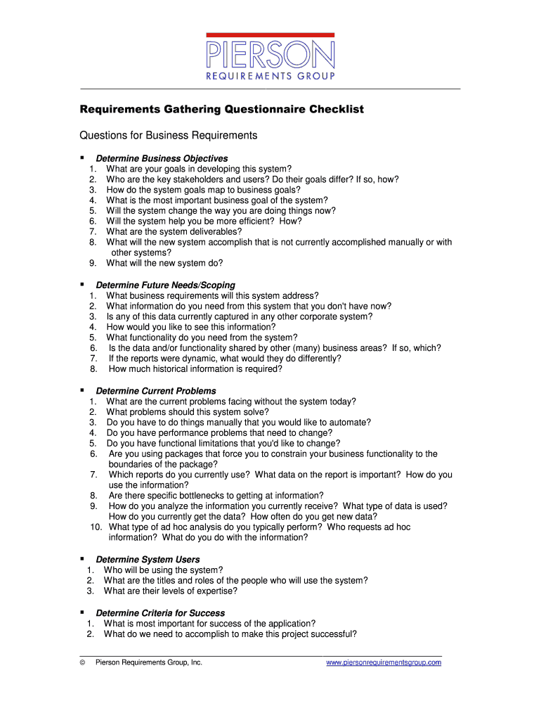 Get the free Requirements Gathering Questionnaire Checklist