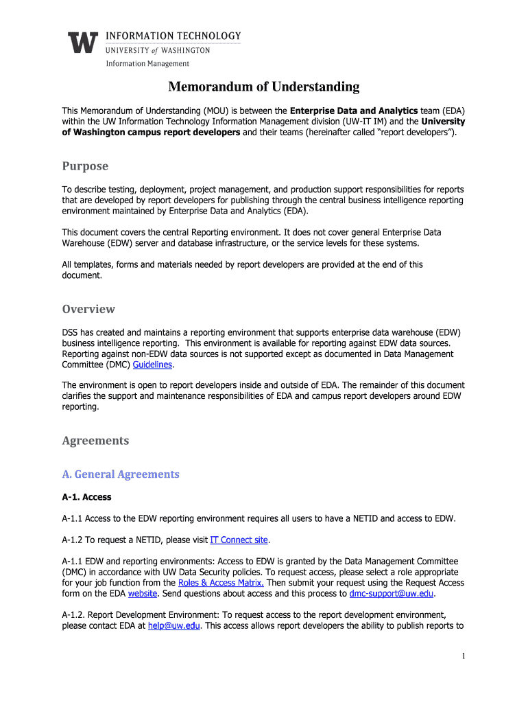 Get the free This Memorandum of Understanding (MOU) is between the Enterprise Data and Analytics ...