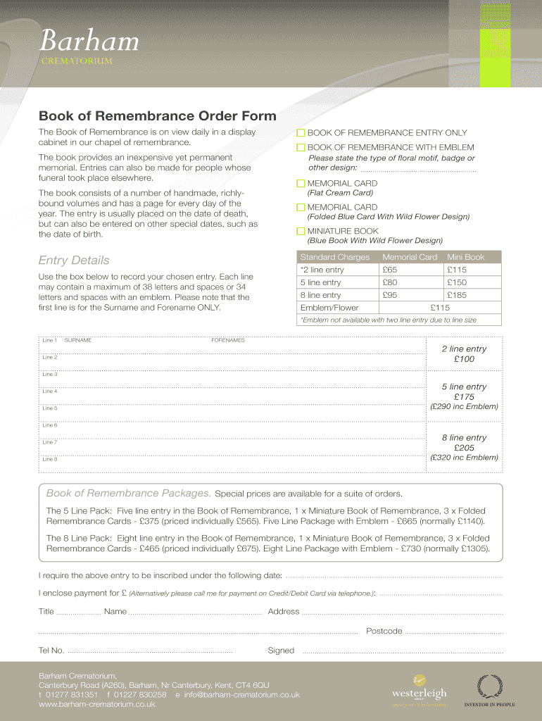 Book Of Remembrance Order is not the form you're looking for?Search for another form here.