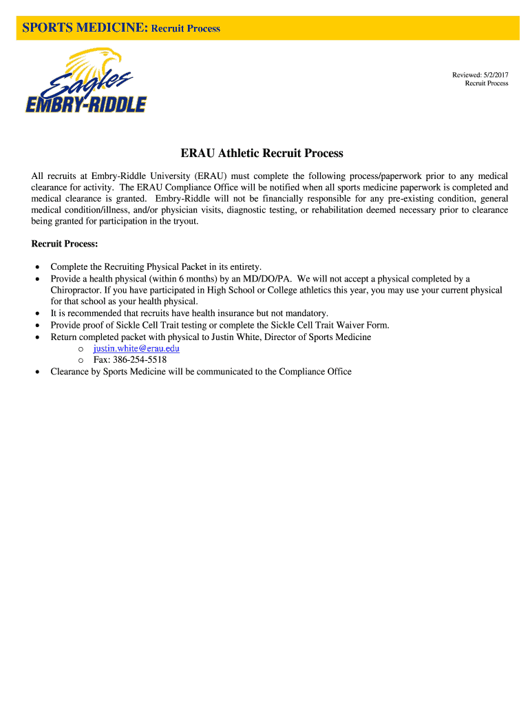 SPORTS MEDICINE: Recruit ProcessReviewed: 5/2/2017