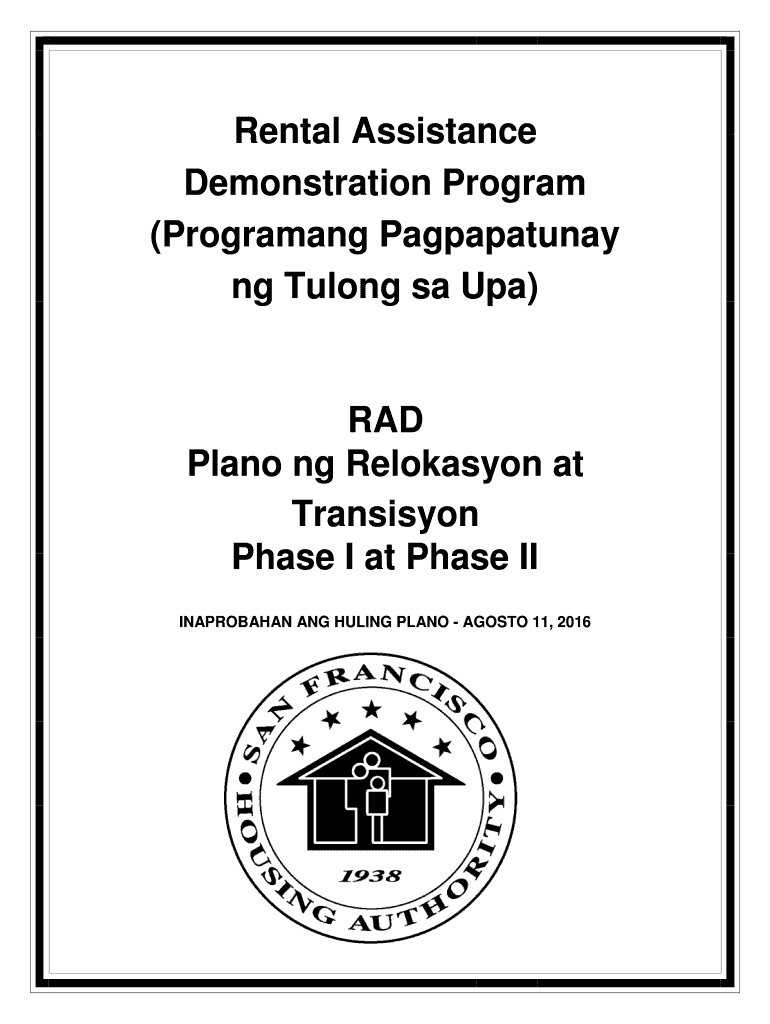 Rental Assistance Demonstration Program (Program ang Pagpapatunay NG Tu long SA UPA)RAD Plano NG Relocation at Transition Phase I at Phase II INAPROBAHAN ANG RULING PLANO AGO STO 11, 2016Mga Himalayan