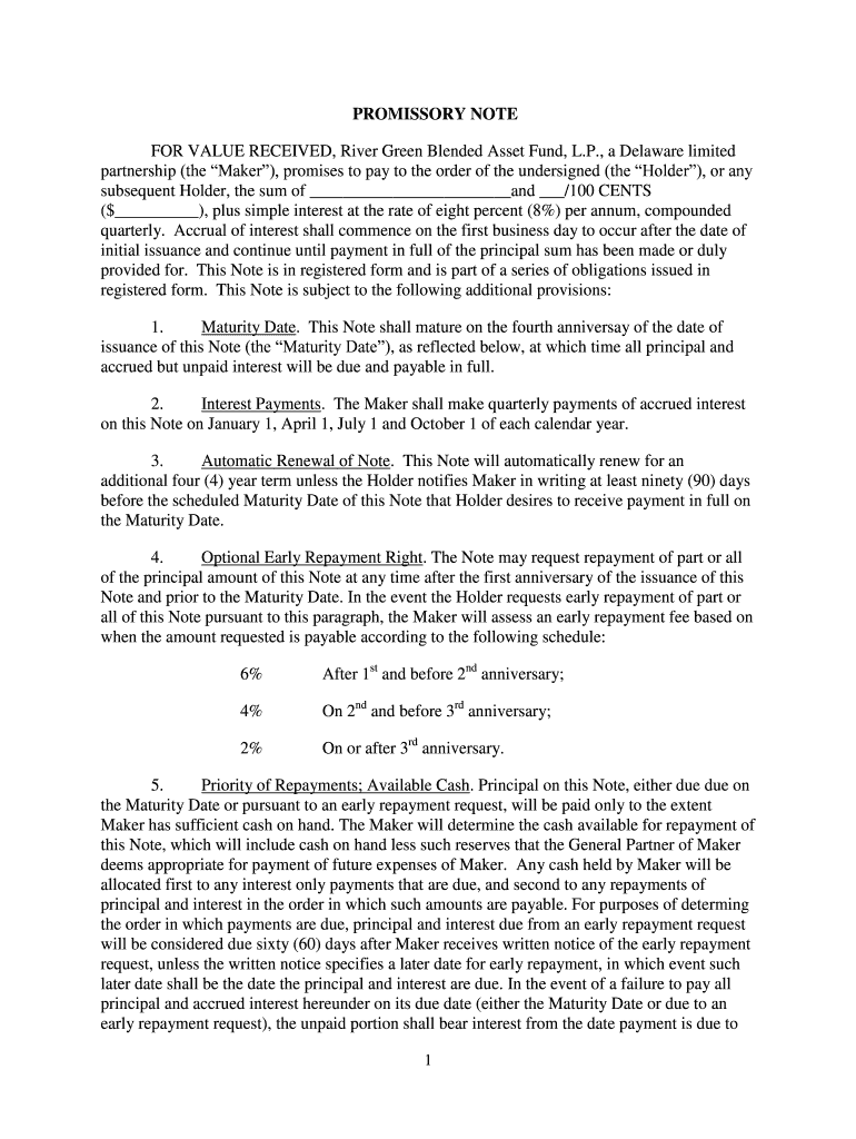 Get the free Promissory Note Agreement