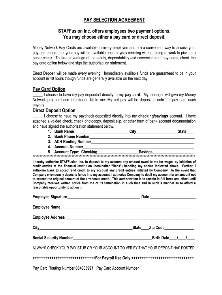 How to fill out pay selection agreement