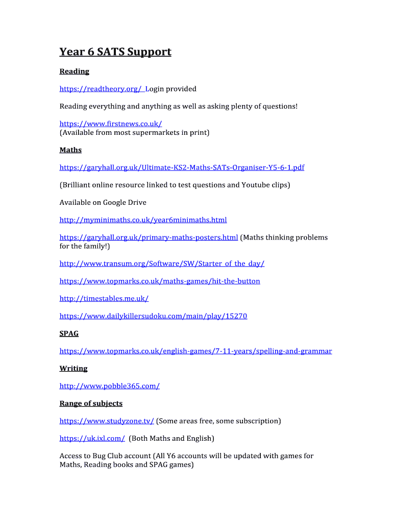 Step 1: Start by familiarizing yourself with the specific requirements and format of the Year 6 SATs support.