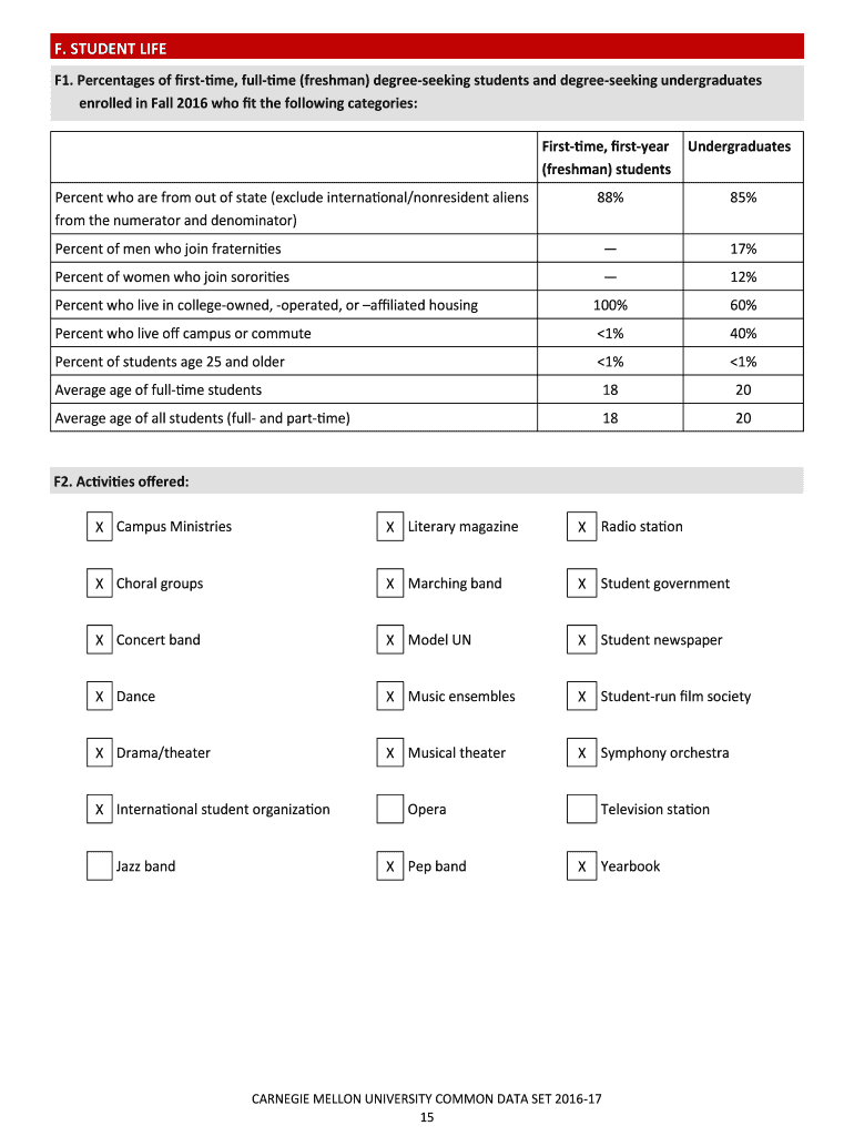 F1. Percentages of first time, full time (freshman) degree seeking students and degree seeking undergraduates