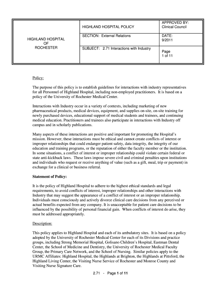 Get the free HIGHLAND HOSPITAL POLICY