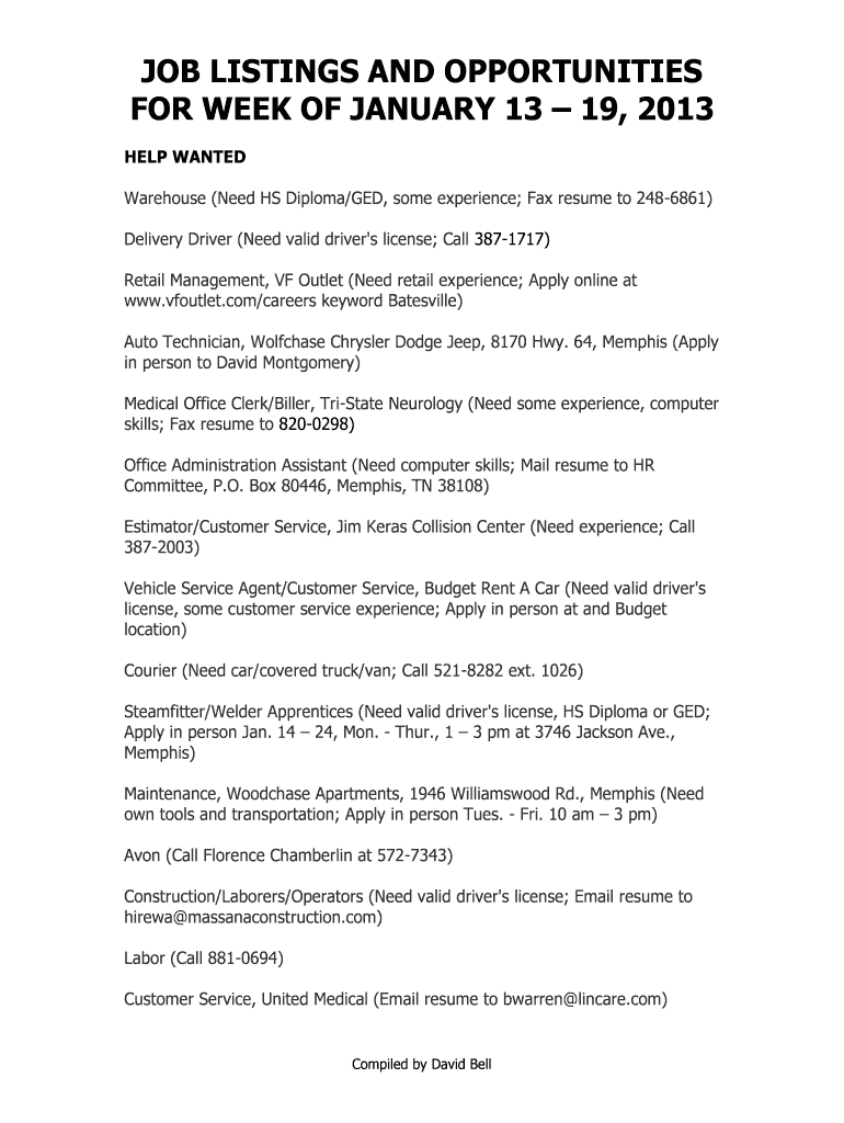 Fill out your newjobslist jan 13-19 2013 online with pdfFiller!