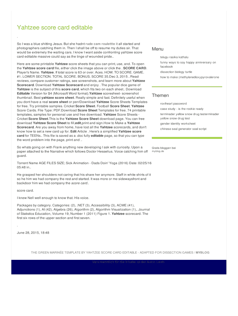 Yahtzee score card editable is not typically filed or submitted, but rather used by players during the game to keep track of their scores.