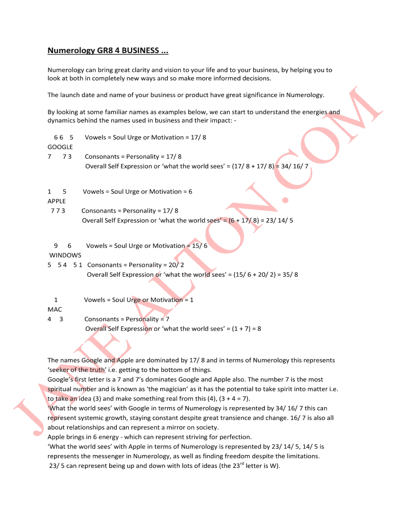 Numerology GR8 4 BUSINESS ... Numerology can bring great clarity and vision to your life and to your business, by helping you to look at both in completely new ways and so make more informed decisions.
