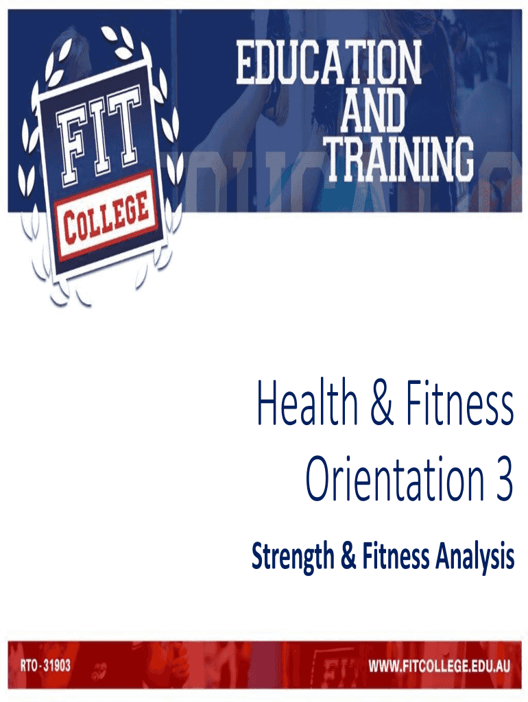 Health & Fitness Orientation 3 Strength & Fitness AnalysisLecture Topics Muscular Strength Testing Muscular Endurance Testing Abdominal & Core Strength TestingCardiovascular Fitness TestingHealth