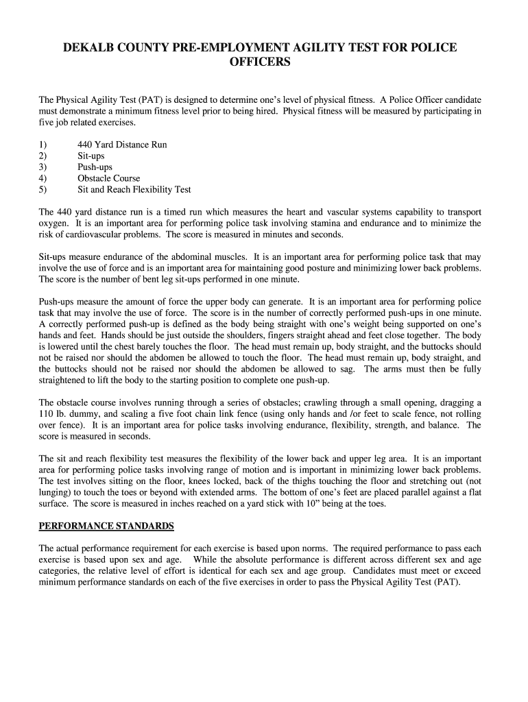 Get the free DEKALB COUNTY PRE-EMPLOYMENT AGILITY TEST FOR POLICE