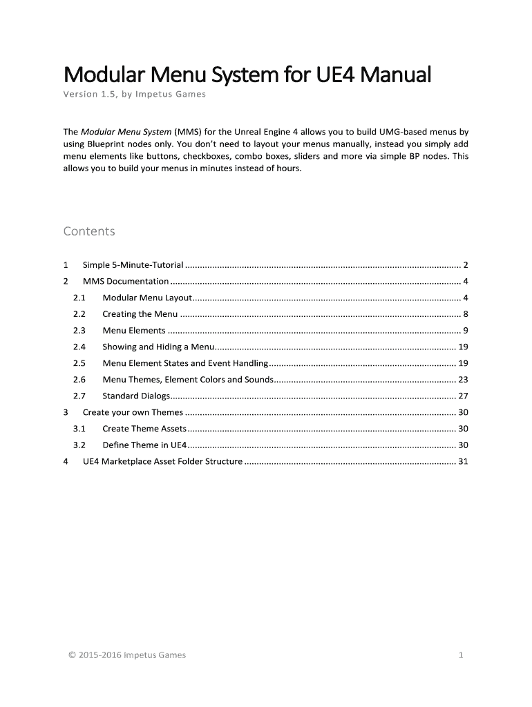 Version 1.5, by Impetus Games The is a Modular Menu System (MMS) for the Unreal Engine 4 allows you to build Based menus by