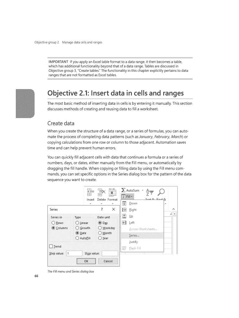 Objective group 2 Manage data cells and rangesIMPORTANT If you apply an Excel table format to a data range, it then becomes a table,