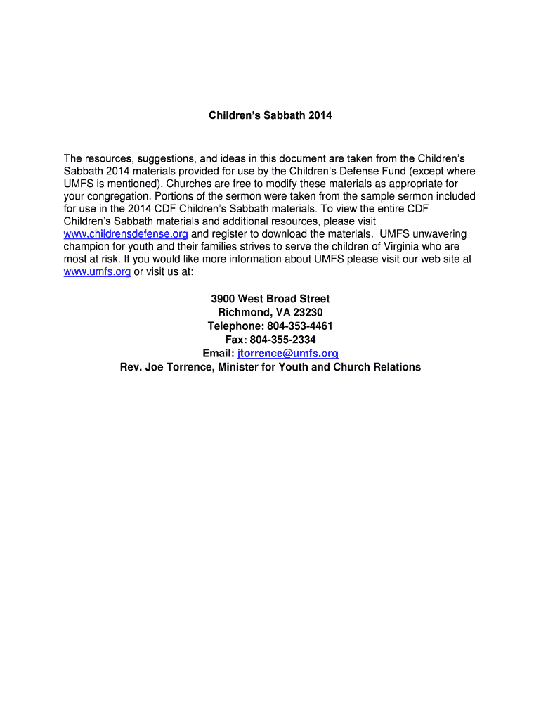 Sabbath 2014 materials provided for use by the Children's Defense Fund (except where