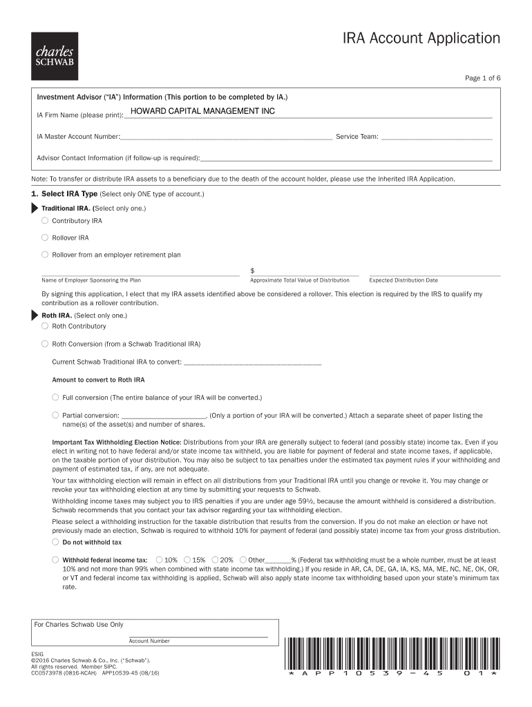 CLEARPRINTIRA Account Application Page 1 of 6Investment Advisor (IA) Information (This portion to be completed by IA.) HOWARD CAPITAL MANAGEMENT INDIA Firm Name (please print): IA Master Account Number: