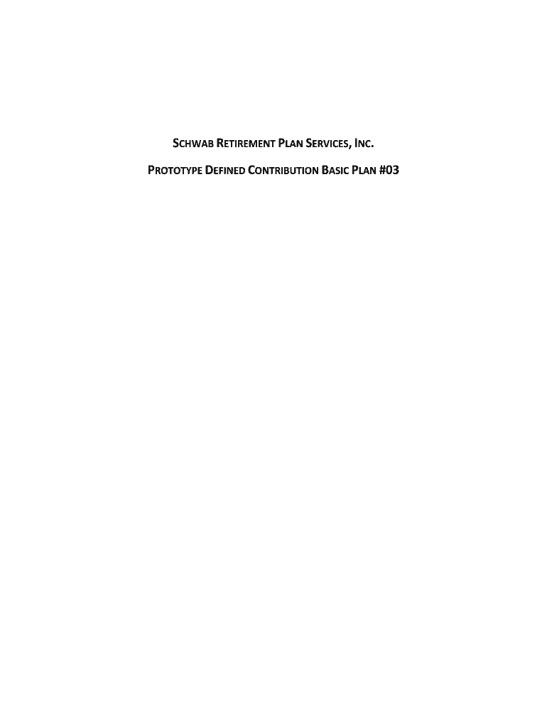 SCHWAB RETIREMENT PLAN SERVICES, INC. PROTOTYPE DEFINED CONTRIBUTION BASIC PLAN #03Table of Contents Article 1.....................................................................................................................................................................................