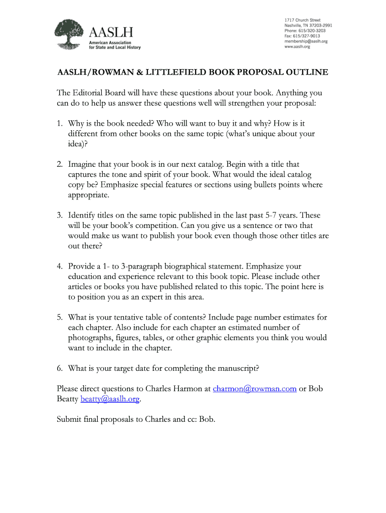 AAS LH/ROMAN & BATTLEFIELD BOOK PROPOSAL OUTLINE The Editorial Board will have these questions about your book. Anything you can do to help us answer these questions well will strengthen your proposal: