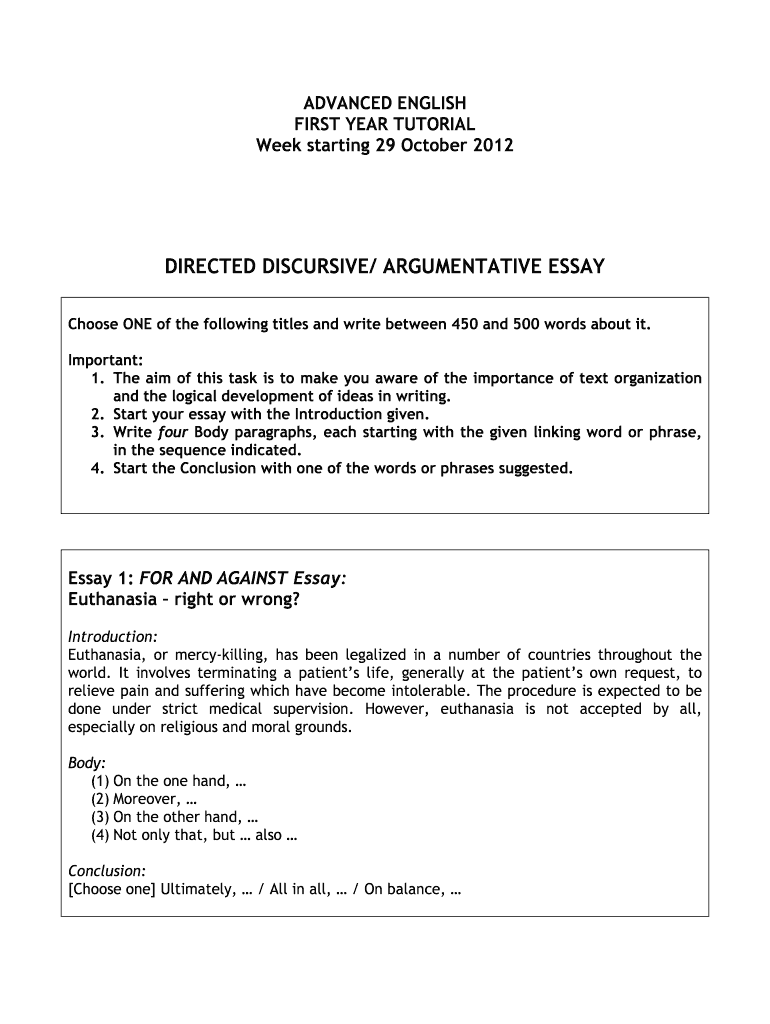 Week starting 29 October 2012DIRECTED DISCURSIVE/ ARGUMENTATIVE ESSAY