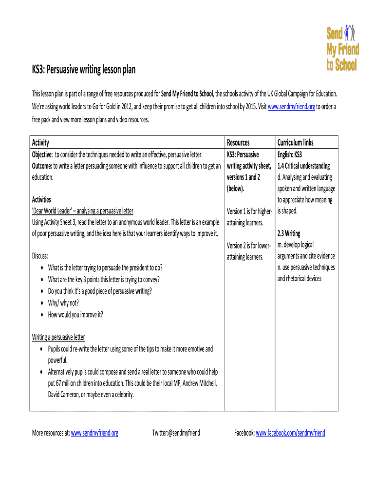 Get the This lesson plan is part of a range of free resources produced for Send My Friend to Scho...