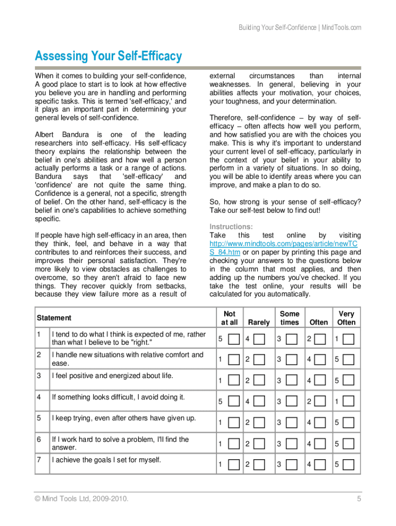 Building Your Self-Confidence Mindtools is not the form you're looking for?Search for another form here.