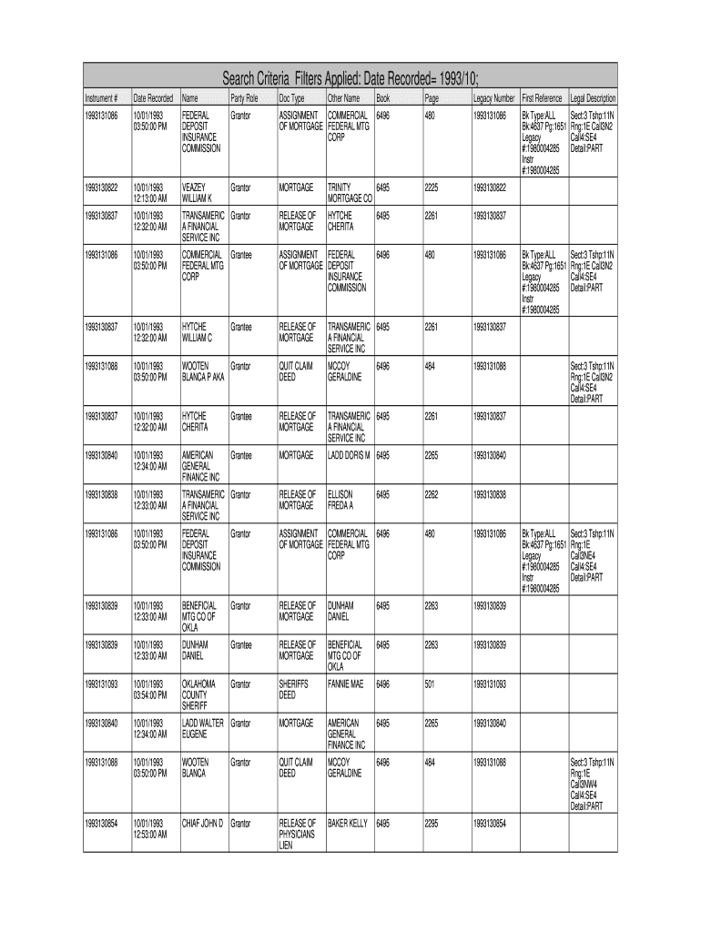 Get the free Search Criteria Filters Applied: Date Recorded 1993/10;