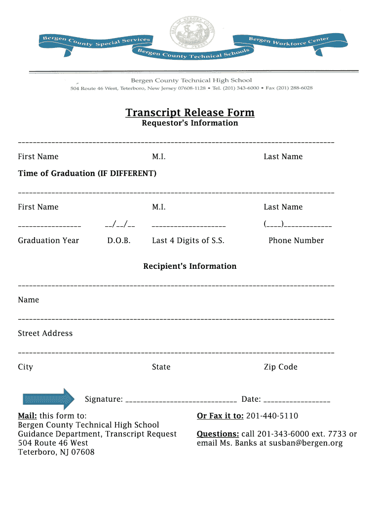 Transcript Release Form Requestors Information First Name. I. Last Sometime of Graduation (IF DIFFERENT) First Name. I. Last Name / / () Graduation Year. O.B. Last 4 Digits of S.S. Phone NumberRecipients
