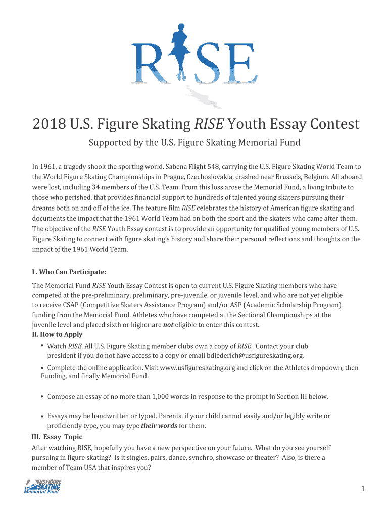 2018 U.S. Figure Skating RISE Youth Essay Contest