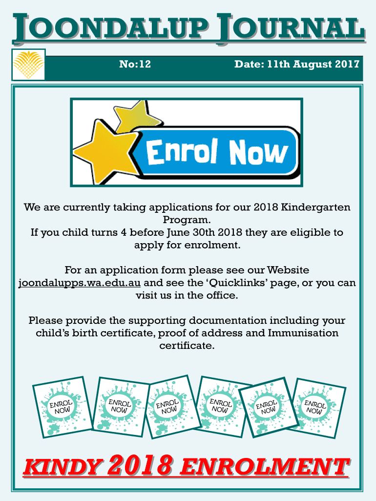 No:12Date: 11th August 2017We are currently taking applications for our 2018 Kindergarten