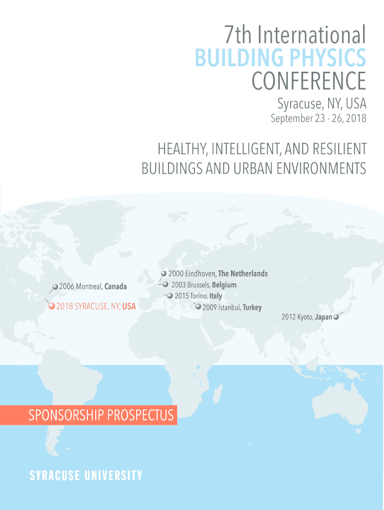 7th International BUILDING PHYSICS CONFERENCE Syracuse, NY, USA September 23 26, 2018HEALTHY, INTELLIGENT, AND RESILIENT BUILDINGS AND URBAN ENVIRONMENTS2006 Montreal, Canada2018 SYRACUSE, NY, USA2000