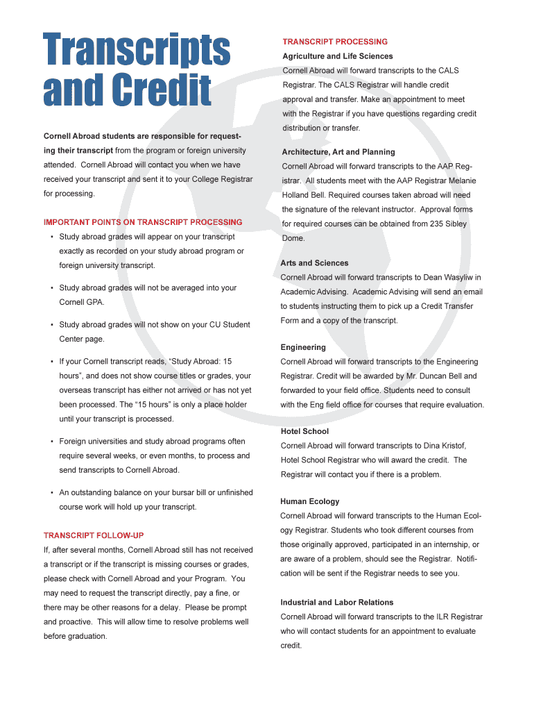 Students or individuals who are applying for educational programs or institutions may be required to file transcript processing.