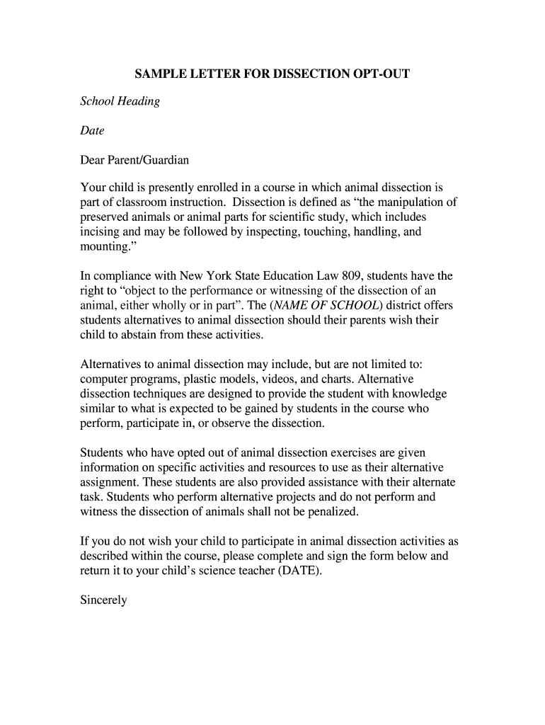 How to fill out sample letter for dissection?