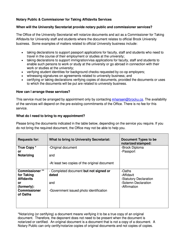 Notary Public & Commissioner for Taking Affidavits Services When will the University Secretariat provide notary public and commissioner services? The Office of the University Secretariat will notarize