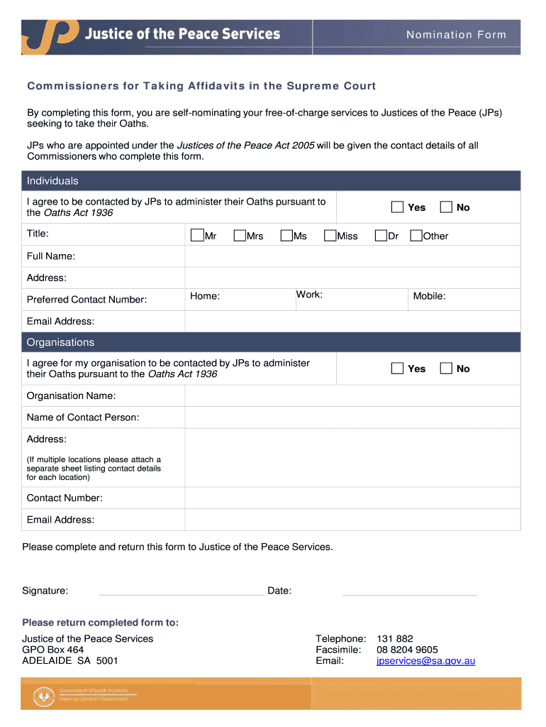 By completing this form, you are self nominating your freeofcharge services to Justices of the Peace (JP's)