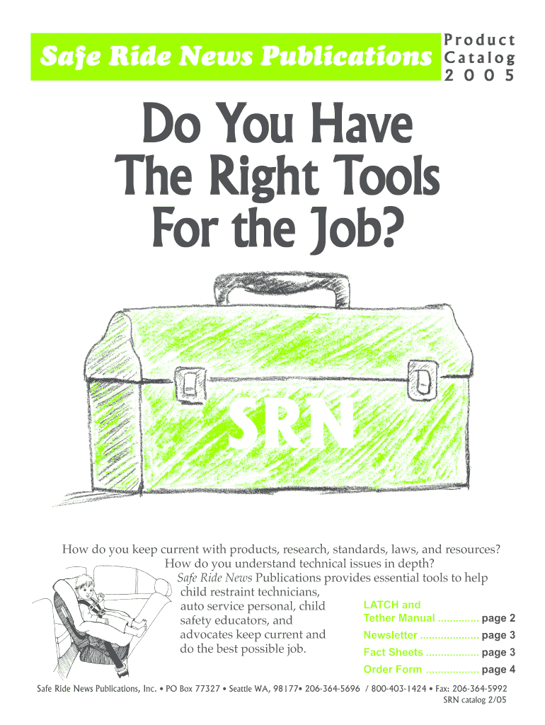 The Safe Ride News Publications Catalog 2005 is a comprehensive resource designed for ordering essential materials related to child passenger safety. It serves as a valuable tool for professionals in the field, as it offers crucial publications that support safety initiatives. This catalog is integral in providing informative resources that aid child restraint technicians, educators, and advocates in their mission to promote child safety.