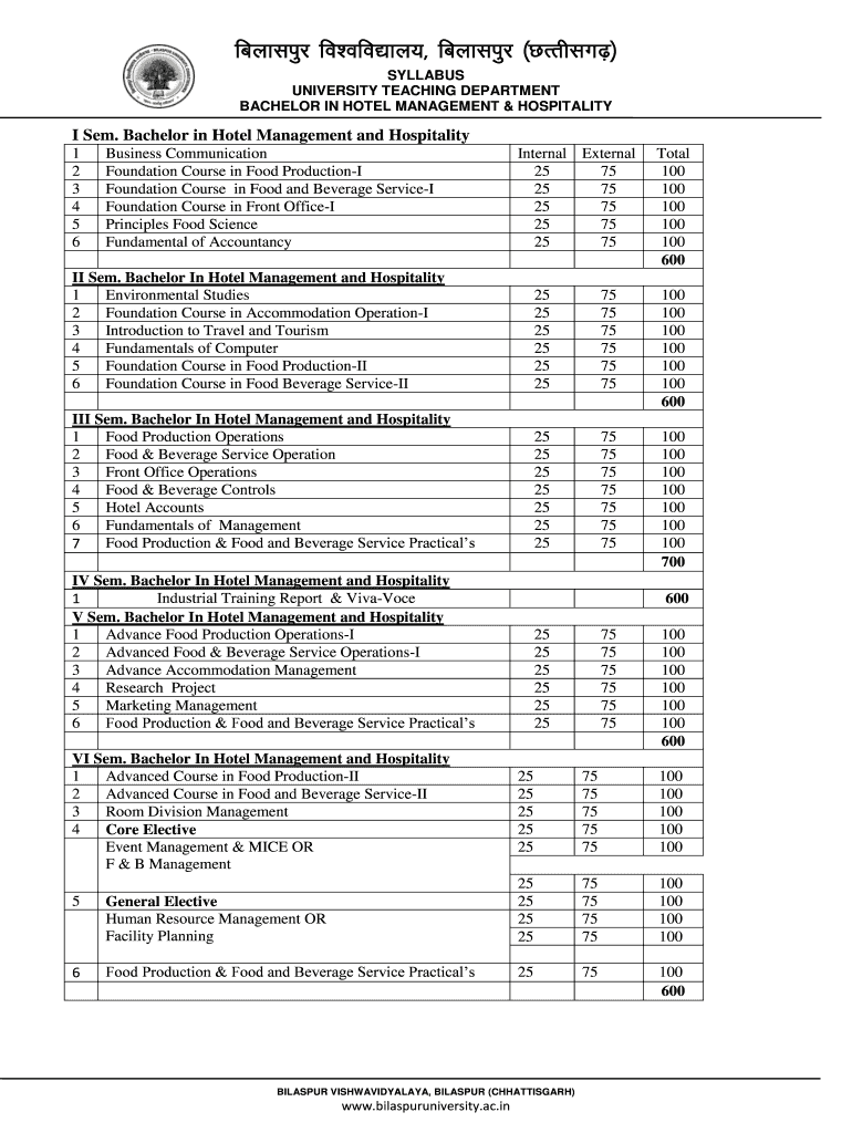 Fcykliqj for 'of KY; fcykliqj NRL+ SYLLABUS UNIVERSITY TEACHING DEPARTMENT BACHELOR IN HOTEL MANAGEMENT & HOSPITALITY SEM. Bachelor in Hotel Management and Hospitality 1 2 3 4 5 6Business Communication