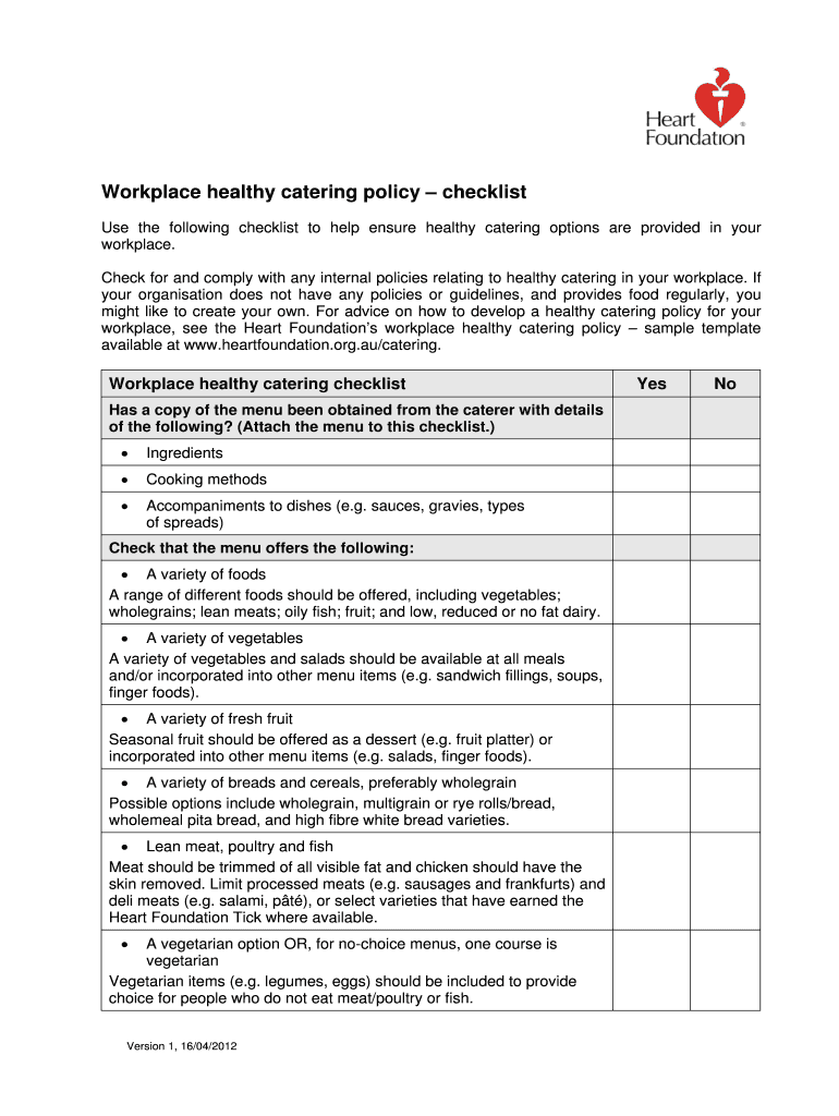 Get the free Workplace healthy catering policy checklist