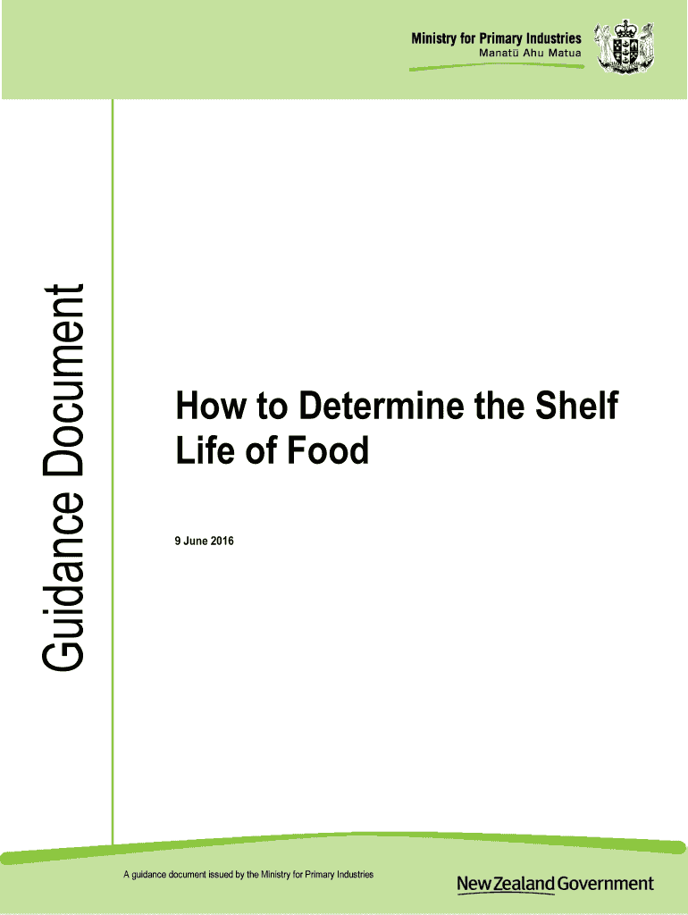 9 June 2016A guidance document issued by the Ministry for Primary IndustriesGuidance Document: How to Determine the Shelf Life of Food9 June 2016Title