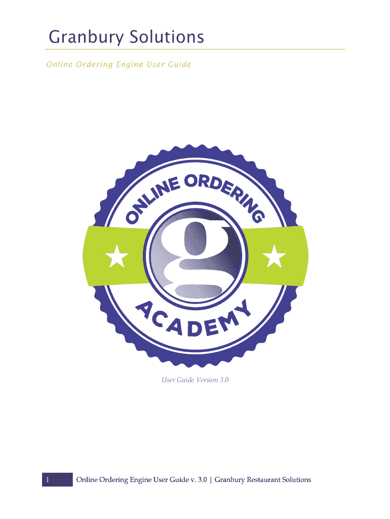 Gran bury Solutions Online Ordering Engine User Guides Guide Version 3.01Online Ordering Engine User Guide v. 3.0 Gran bury Restaurant SolutionsContents 1. CHAPTER 1 INTRODUCTION .......................................................................................................................3